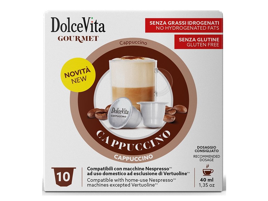 Hľadáte spôsob, ako si pripraviť krémové cappuccino bez drahého kávovaru s tryskou na mlieko? Instantná zmes Dolce Vita v kapsuliach kompatibilných so systémom Nespresso® je tým pravým riešením. Jediná kapsula obsahuje všetko potrebné na prípravu lahodného nápoja – zmes instantnej kávy, sušeného mlieka a cukru.