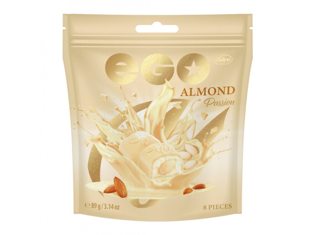 Doprajte si chvíľku luxusu s Vobro EGO Almond Passion. Toto elegantné vrecko ukrýva pralinky, ktoré sú skutočnou oslavou chutí. Vnútri každého cukríka z prémiovej mliečnej čokolády nájdete lahodný krém a predovšetkým celú praženú mandľu, ktorá tvorí chrumkavé srdce tejto sladkosti.