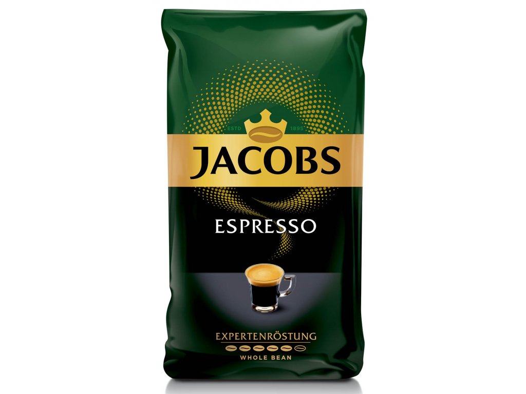 - Jacobs Espresso tmavo pražené zrná s plnou chuťou a vynikajúcou arómou.
